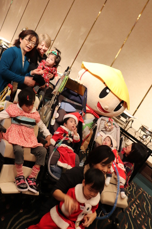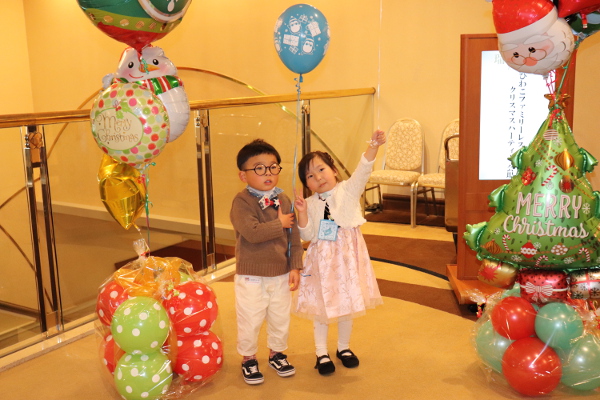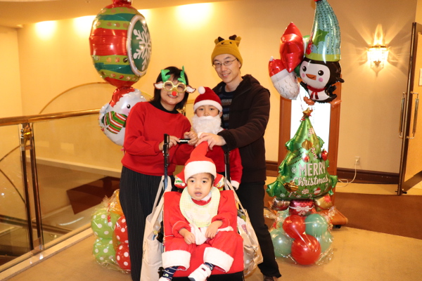 今年も、クサツエストピアホテルで12月22日にクリスマス会を開催しました。 ドレスアップして来てくれた家族、サンタやトナカイの衣装で来てくれた家族など開会前から会場内外は華やかな雰囲気で賑わいました。