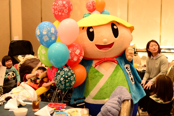 恒例のサンタクロース&トナカイのクリスマスプレゼントでは草津市のマスコットキャラクターたびまるくんも遊びに来てくれました。