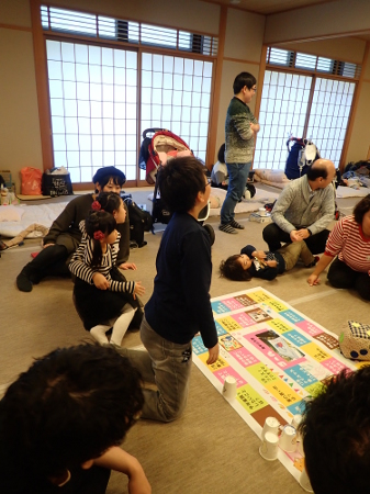 スタッフも交えて、止まったマス目に書いてある質問、例えば、我が子の自慢や家族の思い出、家族でこれからしたいことなど、に答えながら駒を進めていきました。
