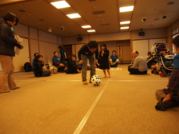 スタッフ特製の豚汁も定番のコロッケもおいしくいただき、おなかが満たされたところで、家族対抗すごろく大会を行いました。
