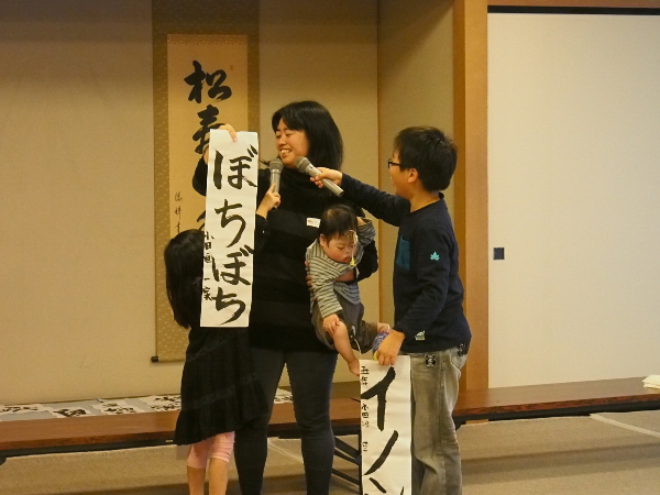 最後に書き初めで今年1年の抱負などを書いて発表しあいました。