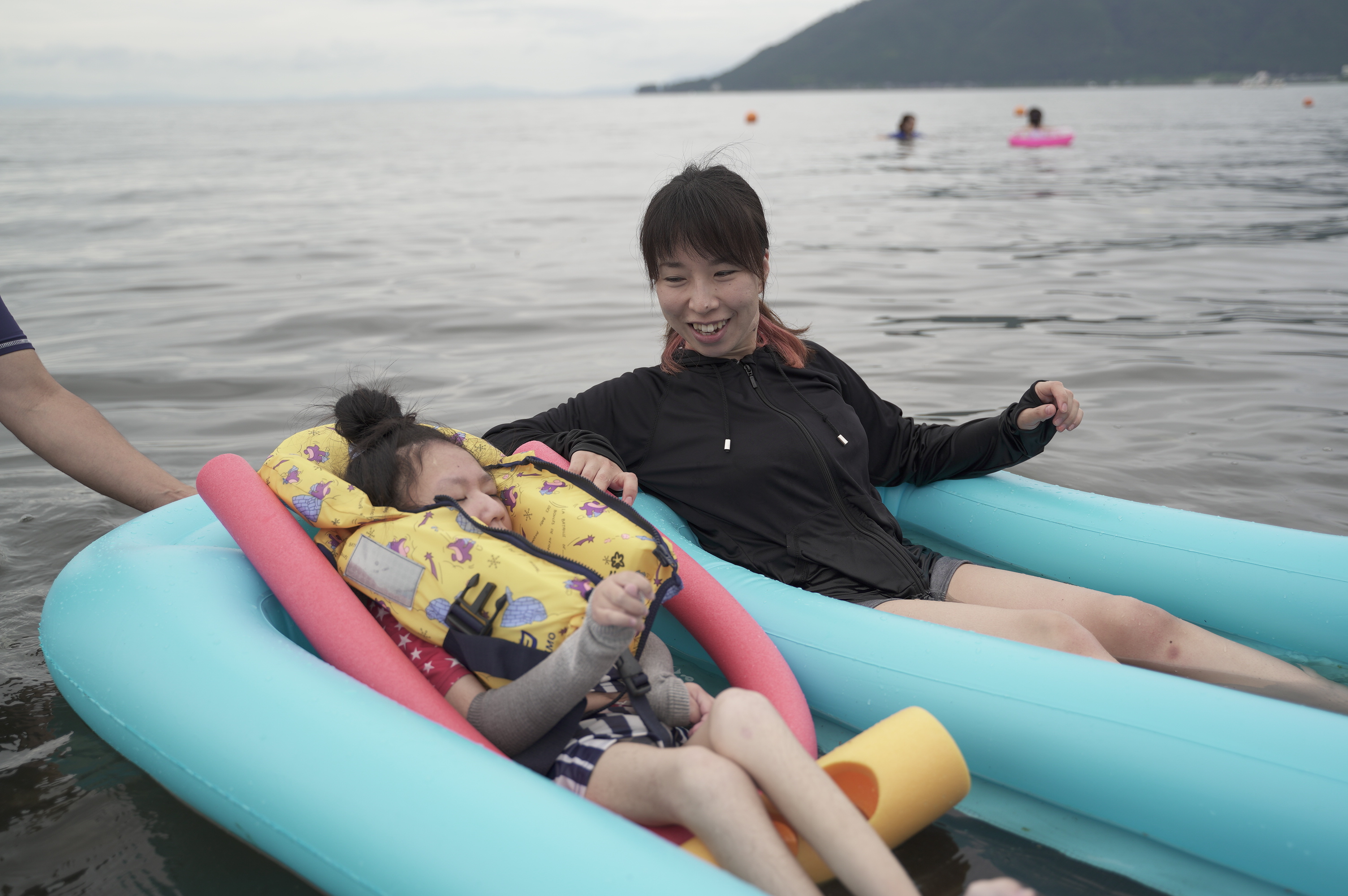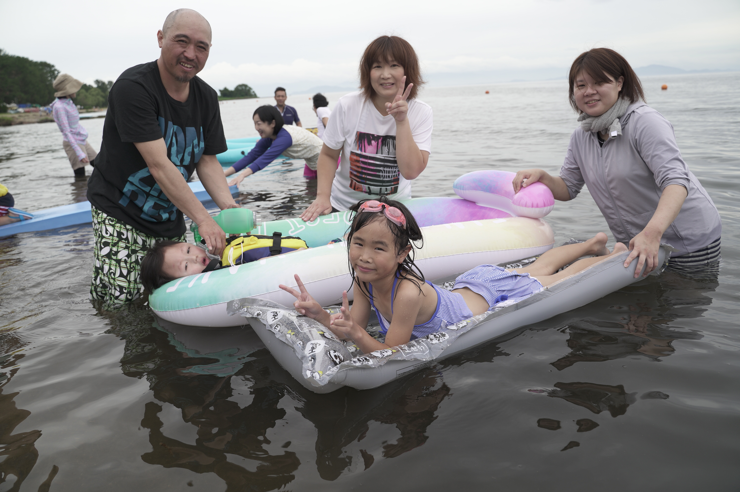 両日とも天候の影響で、びわ湖は少し濁っていましたが、思い思いに湖水浴を楽しむことができました。 滋賀県で活動するBFRだからこそできる湖水浴でした。