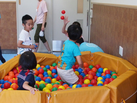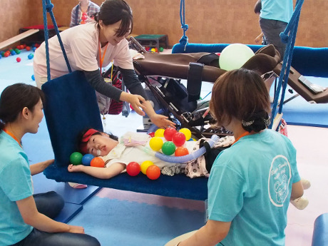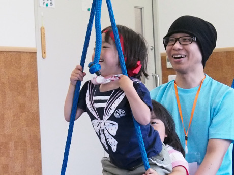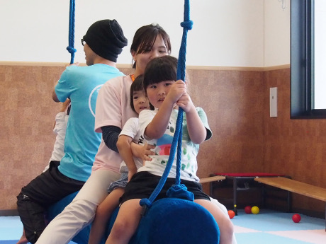 子どもたちは疲れ知らずで、奥にある感覚統合室でスタッフと楽しく遊んでいました。