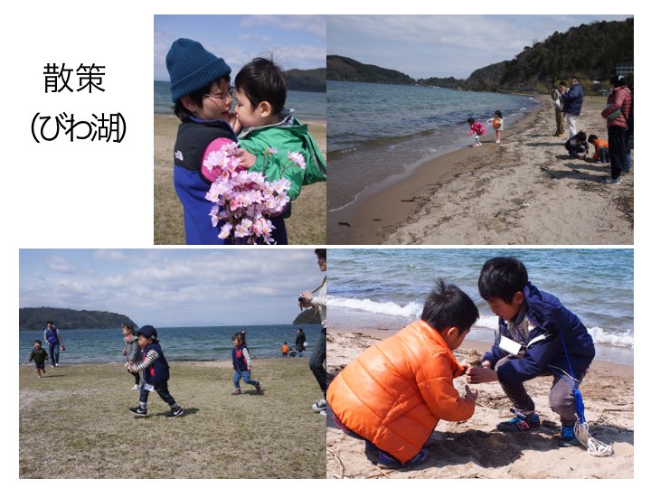 その後、琵琶湖岸の浜辺を散策しました。こどもたちは元気に走り回り、なかには湖に足を入れるきょうだいも!